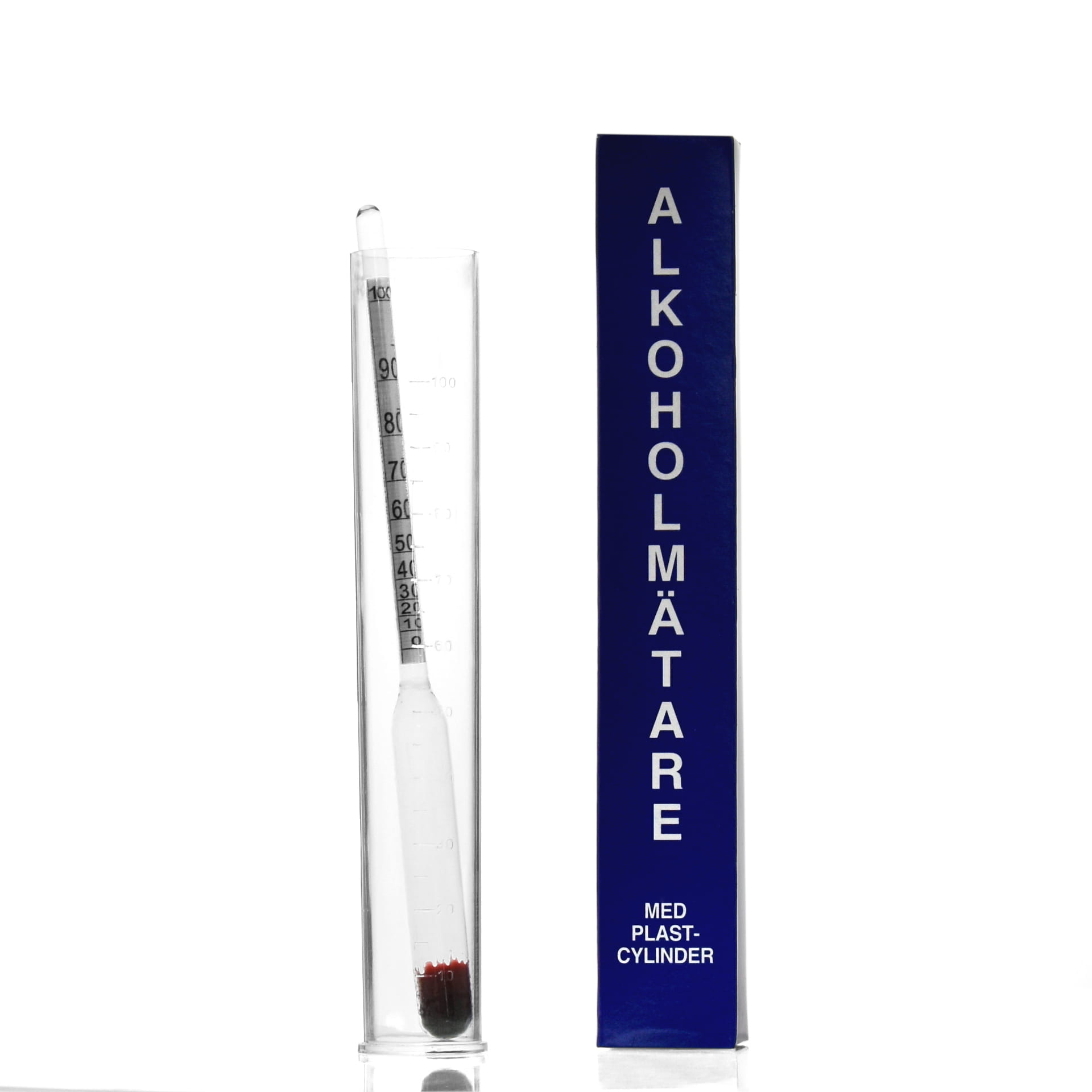 Alkoholomierz szwedzki, sprzedawany w kartoniku z plastikową menzurką, do mierzenia zawartości alkoholu w wódkach czystych. Do pomiaru alkohol powinien mieć temperaturę 20*C.