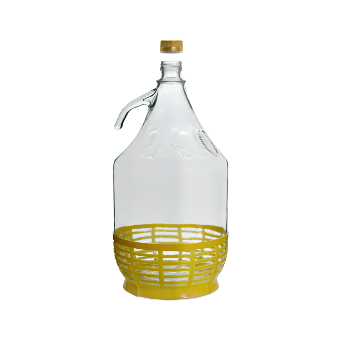- Plastikowy koszyczek: Gąsior jest wyposażony w zdejmowany, plastikowy koszyczek o żółtym kolorze, który zapewnia dodatkową ochronę przed ewentualnymi uszkodzeniami oraz izolację butli od podłoża.