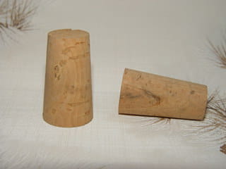 Korek z korka naturalnego, jednolity, stożkowy kształt ułatwia ręczne korkowanie.