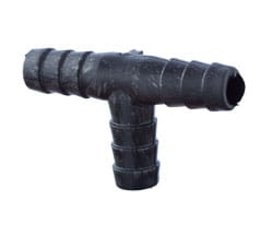 Złączka w kształcie T do podpięcia 3 wężyków. Każda z trzech końcówek posiada średnicę zewnętrzną 10mm.