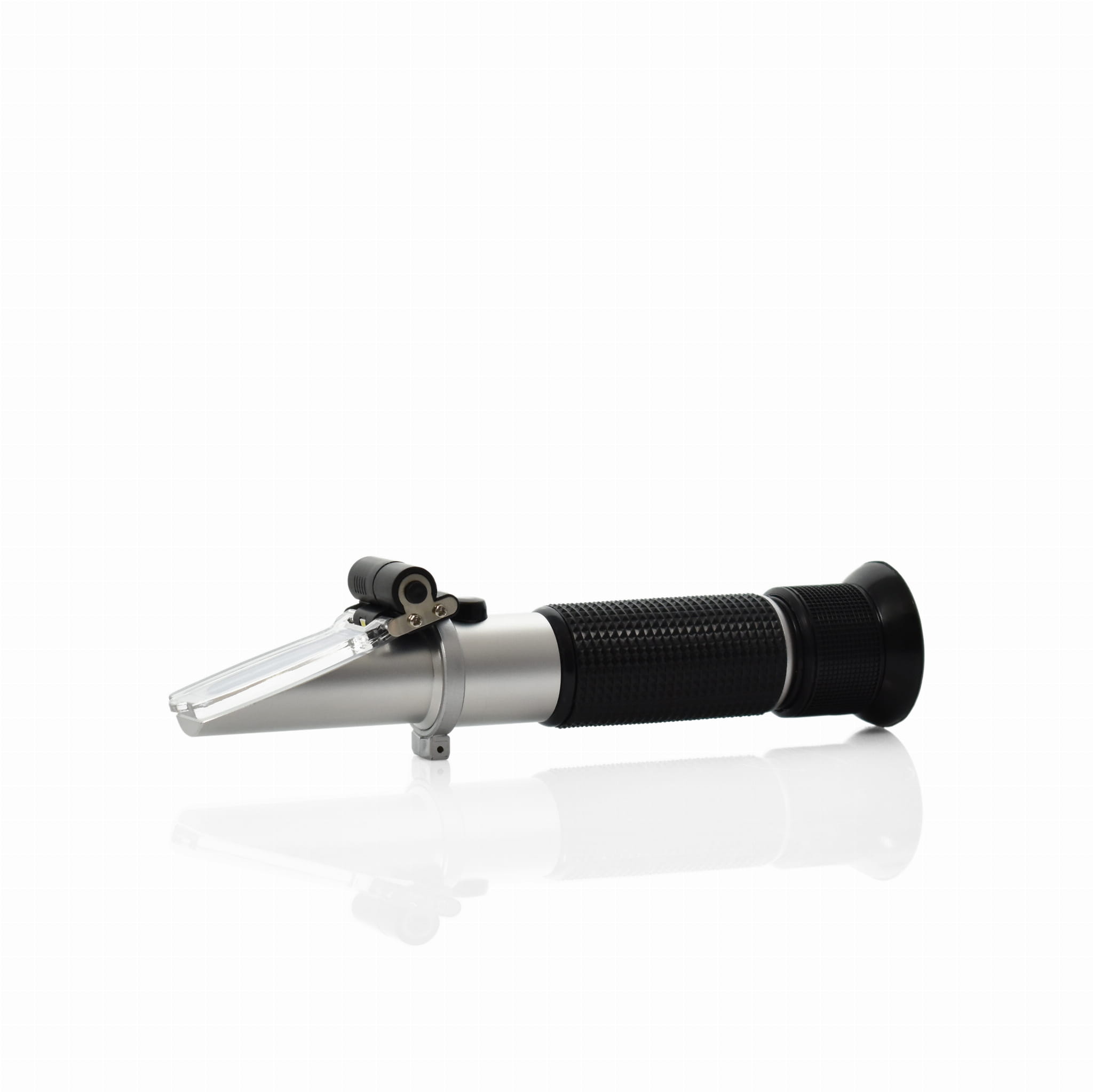 Przenośny oraz lekki refraktometr jest precyzyjnym przyrządem optycznym służącym do określenia procentowej zawartości cukru, w sokach owocowych, nastawach winnych, brzeczce piwnej, etc.., podając ją na dwóch skalach: